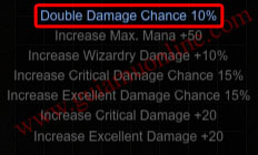 Este combo é um pouco inferior ao citado acima deste, por um diferença mínima, onde você sacrifica 10% de Double Damage por 5% de Wizardry Damage. Basicamente você escolherá entre ter 10% de chance de acertar o dobro de dano ou sempre dar 5% a mais de dano.